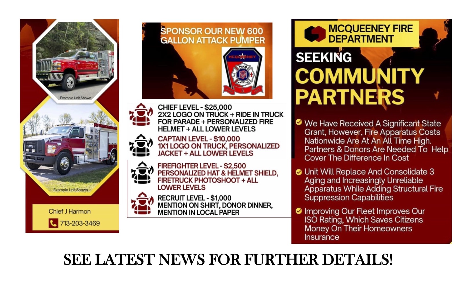 The McQueeney Volunteer Fire Department also provides fire and life safety education programs to the people of our community through our Fire Prevention Week activities at McQueeney Elementary School and as requested by other groups or people within our community.