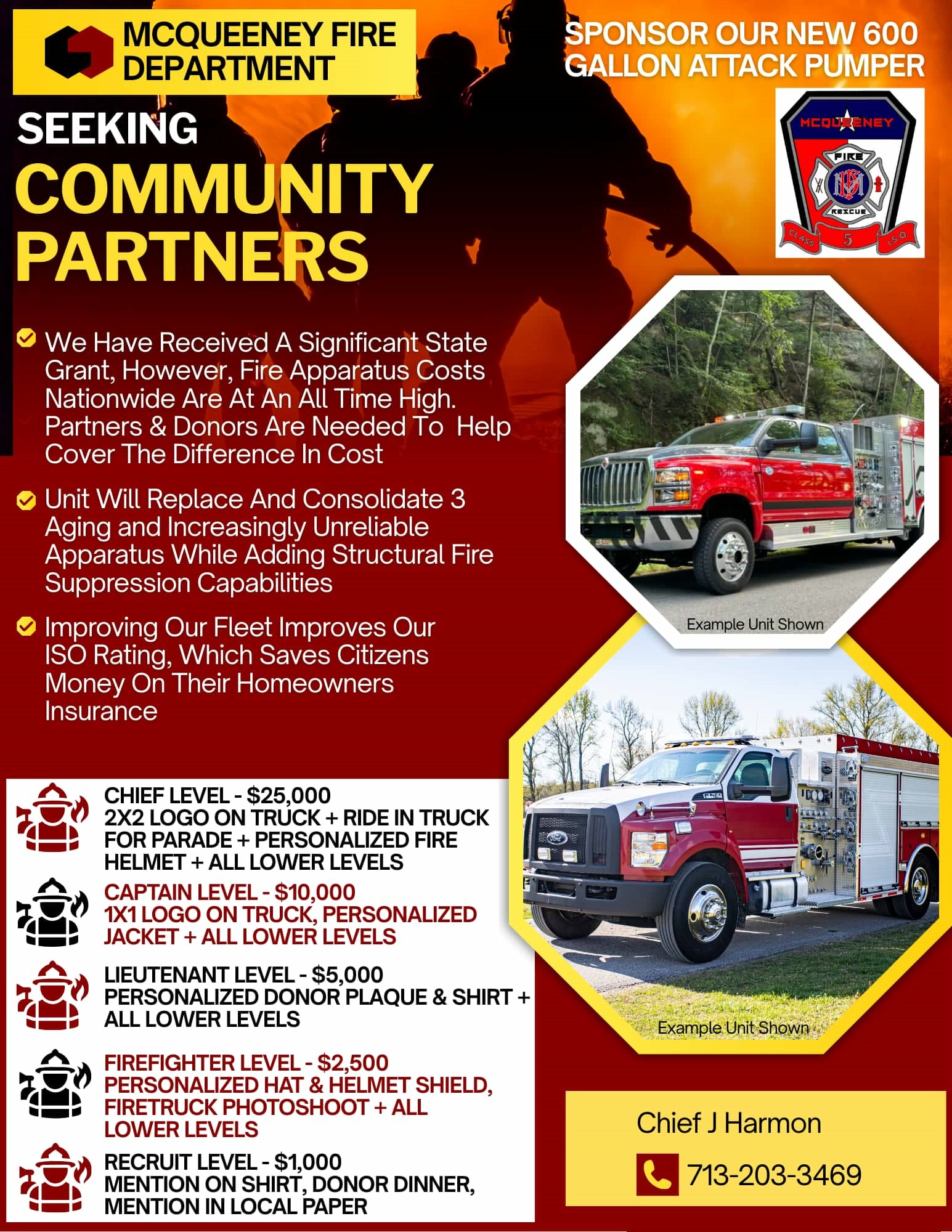 Shortly, our community property owners will be receiving our annual Chief’s Letter fund raiser letter. Please consider a generous donation, possibly even partnering with us on this new vehicle. As always, donations of any amount are appreciated.